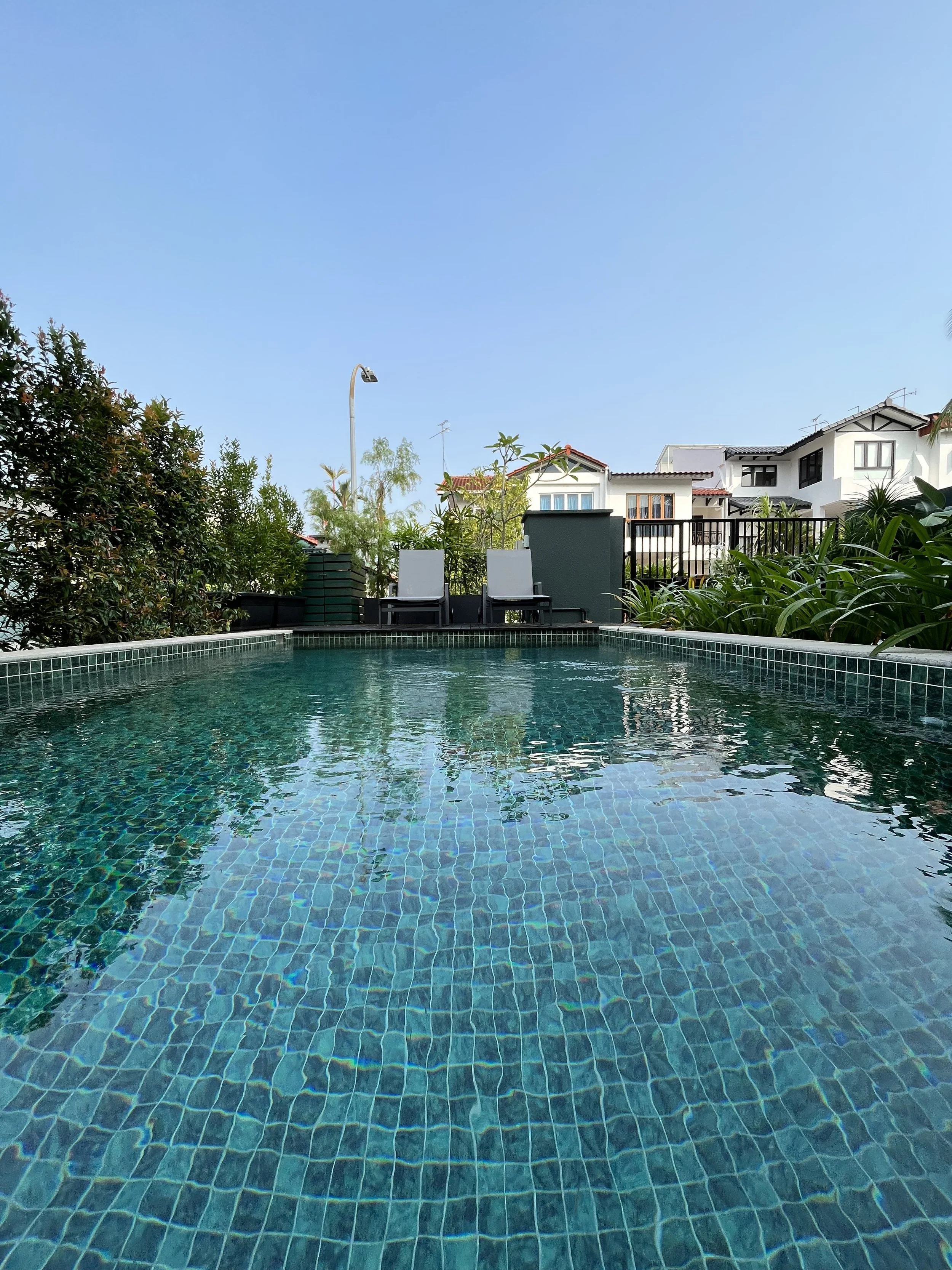 The plunge pool is surrounded by beautiful plants, offering a private space for a dip on a hot afternoon. A perfect spot to lounge with a book, soak up rays or catch up with work. It is also a great space to hold a mini aqua aerobics class.