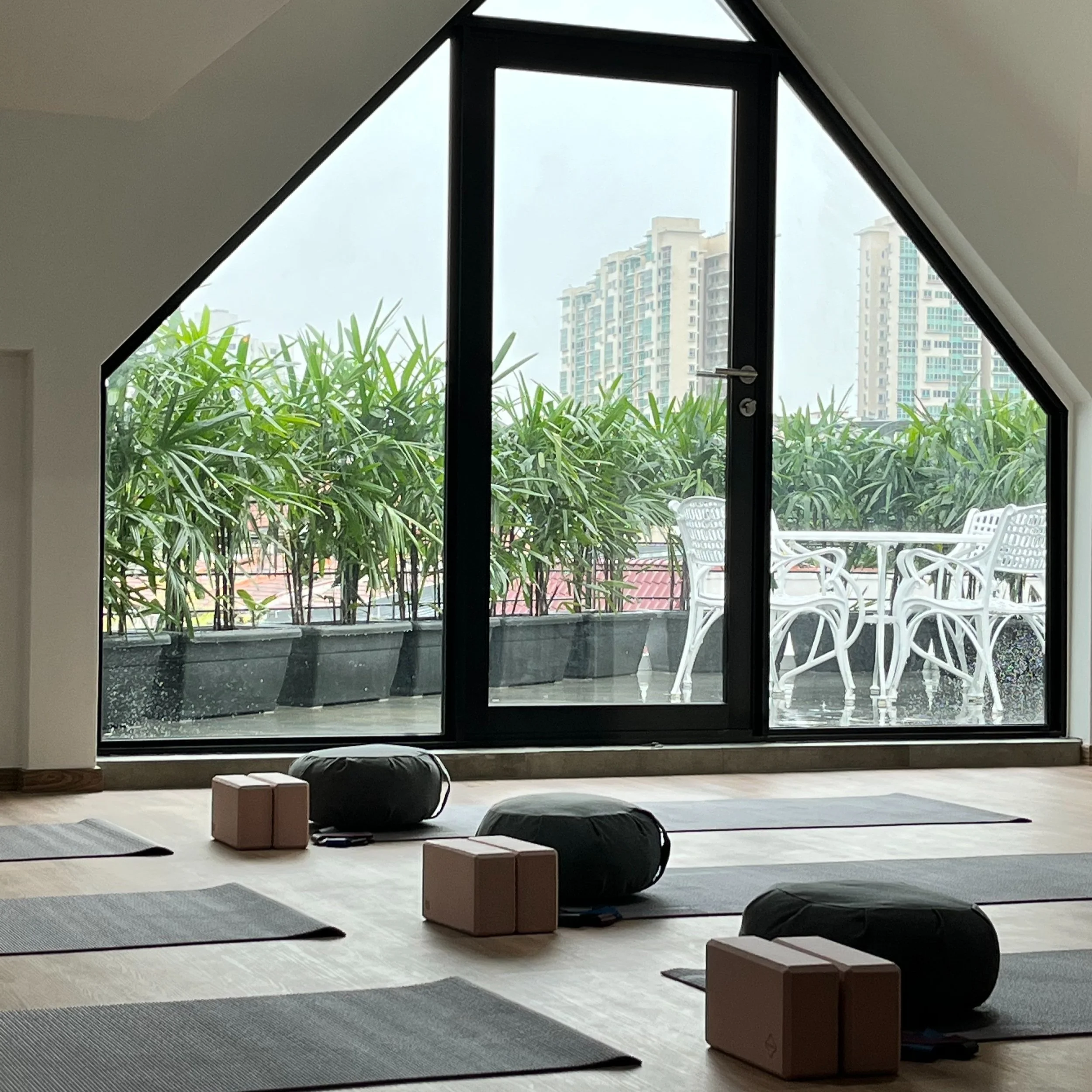 The Studio was designed for yoga and meditation. However, its open (yet private) flexible space also makes it ideal for group therapy, community circles, dance practice, and other activities where a mirrored, open space is required. Views out onto the terrace provides light as well as inspiration.